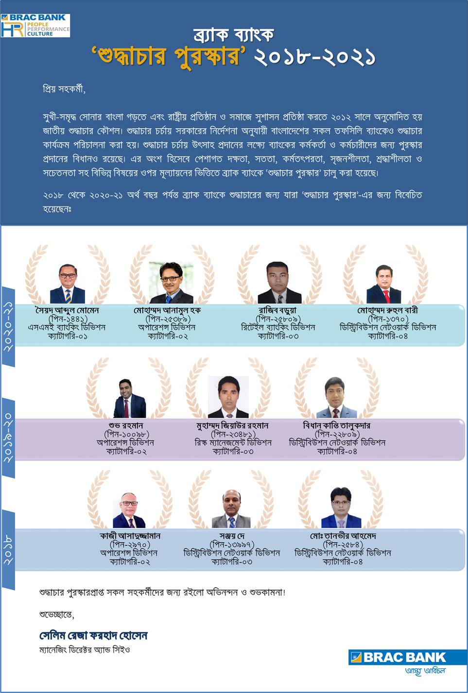 ‘শুদ্ধাচার পুরস্কার’ ২০১৮-২০২১ (Integrity Award 2018-2021)