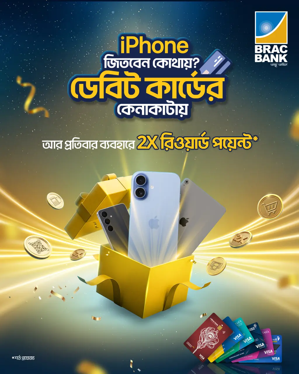 এই অফারটি শুধুমাত্র POS, QR, Foreign ATM এবং E-commerce ট্রানজ্যাকশনের ক্ষেত্রে প্রযোজ্য;