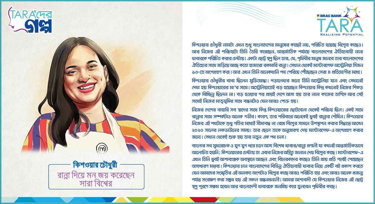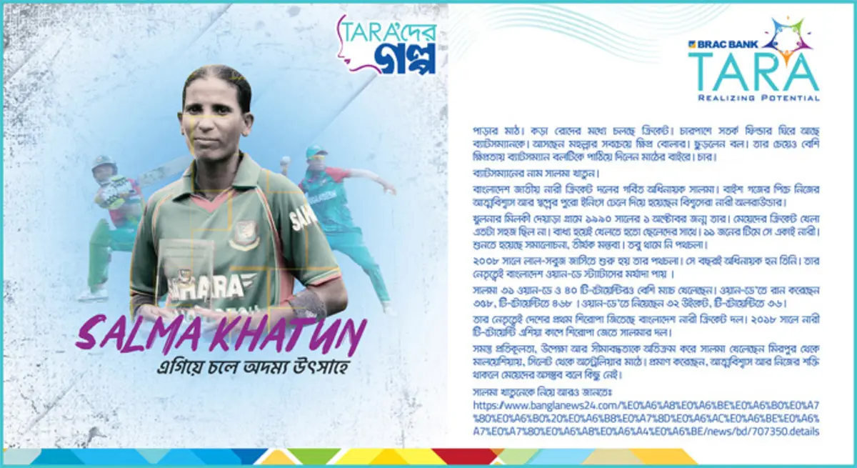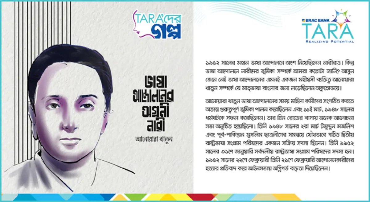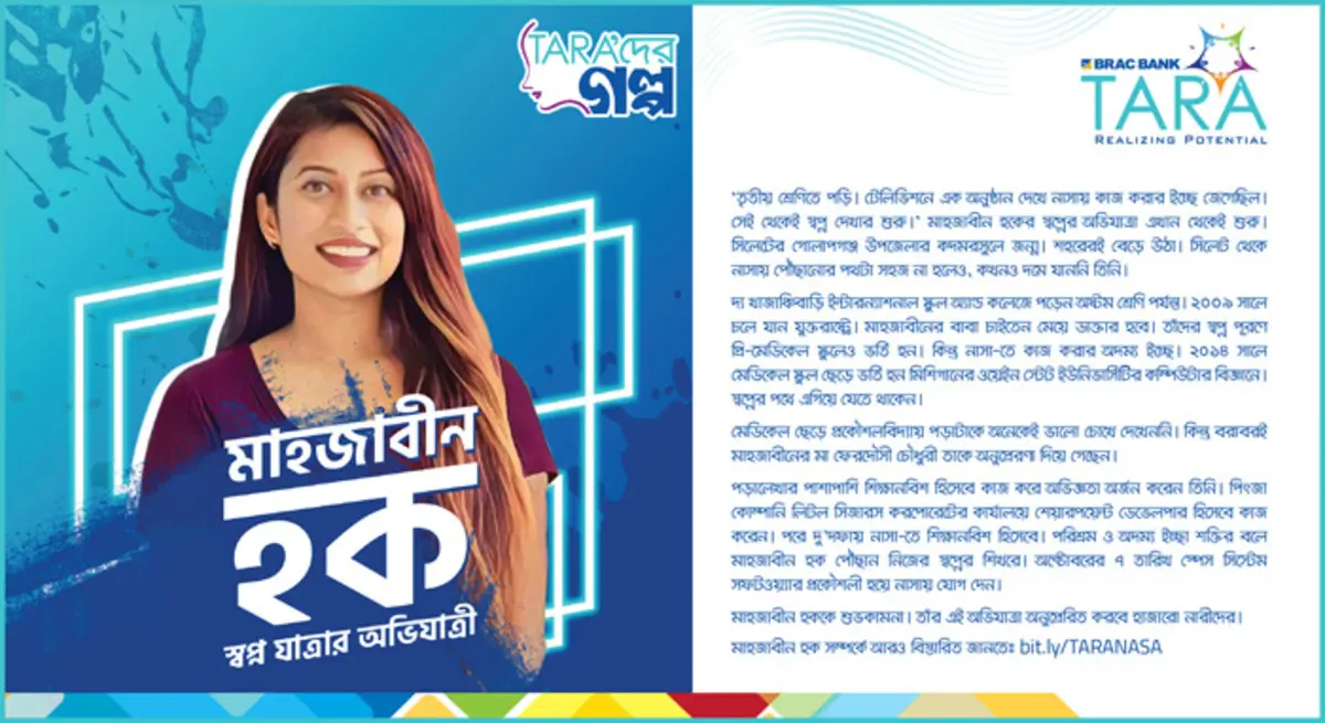 নানা প্রতিকূলতা সত্ত্বেও নিজ নিজ কর্মক্ষেত্রে বলিষ্ঠ ভূমিকা রাখছেন বাংলাদেশের নারীরা। নিজেদের কর্মদক্ষতা ও প্রচেষ্টা দিয়ে তারা যেমন তাদের কর্মক্ষেত্রে ঘটাচ্ছেন বিপ্লব, ঠিক তেমনভাবেই স্থাপন করছেন অনুপ্রেরণার নতুন এক দৃষ্টান্ত। দেশকে এগিয়ে নিয়ে যাওয়ার পাশাপাশি দেশের নারীসমাজের উন্নয়নেও রাখছেন অপরিসীম অবদান। তাদের সাফল্য তারার মতোই পথ দেখাচ্ছে বাংলাদেশের লাখো নারীদেরকে, নিয়ে যাচ্ছে নতুন সম্ভাবনার পথে। আসুন শুনি সেইরকম কিছু তারাদের গল্প।