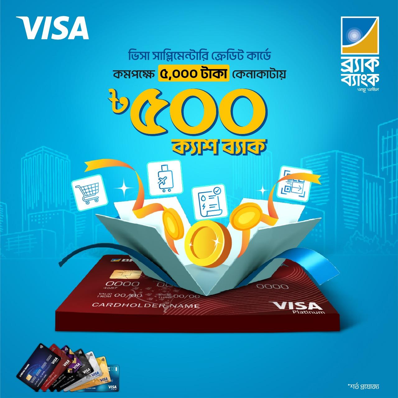 BDT 500 cashback on minimum retail spending of BDT 5,000 with your BRAC Bank VISA Supplementary credit card