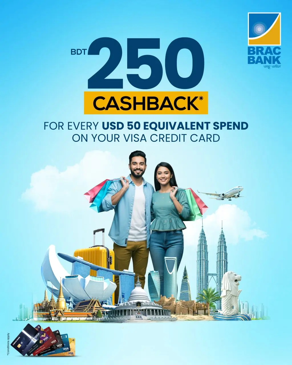- This offer is applicable for selected BRAC Bank Visa credit cardholders who received offer communication. (Except BASIS, ERQ & RFCD)