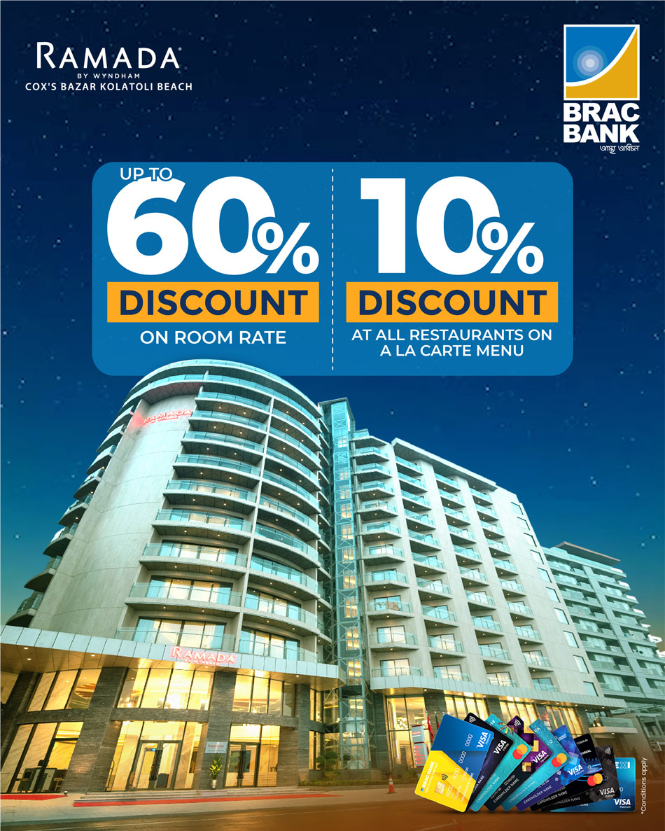 - Enjoy up to 60% discount on room rate and 10% discount at all restaurants on A la Carte menu only for Brac Bank Card Holders at RAMADA by Wyndham