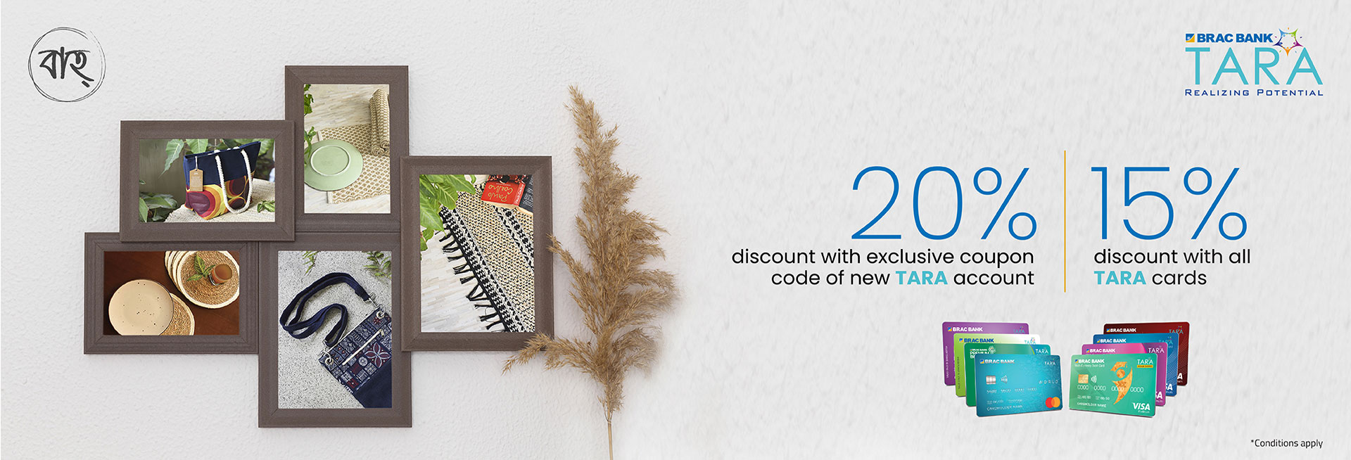 The BRAC Bank TARA is Bangladesh's first 360-degree, comprehensive, and dedicated women banking solution. TARA offers banking services to women across all age, profession and background across the country. Our aim is to increase women's self-esteem and decision-making capacity by improving access to banking information and providing financial services that match the unique banking needs of women in both retail and SME segment. TARA is a one stop solution for all kind banking products for every women such as from savings to lifestyle loan, financing for business, business consultation and documentation support.